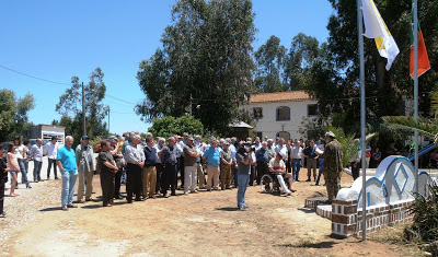 Com as tropas em sentido, subiram as bandeiras: a da Briosa ao som do respectivo hino, da autoria do Vítor Meira, que, infelizmente não pôde estar connosco, e logo a seguir a Bandeira das Quinas, enquanto todos entoavam o Hino Nacional, com o respeito e solenidade que seriam de esperar. O terceiro mastro era ocupado, de pleno direito, pelo estandarte da SUINIMOR, do nosso anfitrião e companheiro Carlos Almeida Silva.
