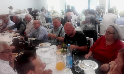 Após a sobremesa e o café, chegou o momento do nosso anfitrião, o Fernando Santa, nos brindar com as habituais saudações aos presentes e aos ausentes, o que fez com agrado geral. Especialmente sentida a homenagem aos companheiros que já nos deixaram definitivamente, que foram referidos pelos seus nomes, numa lista (eventualmente incompleta) que já é bastante extensa. Em sua memória foi respeitosamente guardado, em pé, o costumado minuto de silêncio: