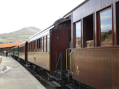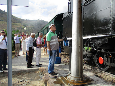 Assim foi. Já andava à muito tempo para fazer esta viagem ao passado. Fui no dia treze (Sábado passado) fazer a viagem no Comboio Histórico do Douro. Fui lembrar como se viajava nos anos (no meu caso) 50 e 60. Foi uma viagem espectacular com paisagens maravilhosas e com um tempo espectacular. Saímos da Régua às 15 e 23 com chegada ao Tua às 16 e 24 de onde saímos às 18 e 32 chegada ao Pinhão às 17 e 30 onde estivemos até às 17 e 55 para chegar à Régua às 17 e 10. Foi uma viagem agradável com animação a bordo e como não podia deixar de ser foi servido a todos os passageiros um belíssimo "Porto Ferreira" e rebuçados típicos da Régua.Esta linha do Douro começou a ser construída em 1875 e em 1879 o primeiro comboio chegava à Régua e, um ano mais tarde, ao Pinhão. Passado oito anos chegava a Barca D' Alva continuando até Salamanca, actualmente não existe! Desta linha, saía também outras duas linhas, estas de via estreita, entre o Tua e Bragança. Infelizmente também já não existem! Assim foi, uma viagem para recordar o passado. No fim regressei ao Porto para apanhar o comboio para Coimbra às 9 e 53. O dia que tinha estado lindo acabou com o aparecimento da chuva. Julgava eu que ia ter uma viagem também ela agradável, enganei-me. Quando o comboio passou por Estarreja, começou abanar por todos os lados, toda a gente aflita o maquinista abrandou a marcha e conseguimos chegar à Mealhada que estava completamente ás escuras e para variar o comboio ficou também às escuras sem qualquer tipo de energia! O vento quase tirava o comboio dos carris.Fora do comboio, eram chapas pelo ar, bombeiros por todo o lado, foi horrível.Os passageiros foram avisados pela"GNR" para não sair nem chamar família para os vir buscar. Era altamente perigoso. Mas pronto. Resumindo e concluindo, passei a noite mais a minha mulher no comboio. Saí do Porto às 9 e 53 cheguei a Coimbra às 7 e 40! Se a matemática não me atraiçoa, foram cerca de 10 horas dentro do Comboio. Foi um furacão. Pois claro. É o que temos de mais certo para o futuro, são fenómenos destes em que a mão do homem está metida...