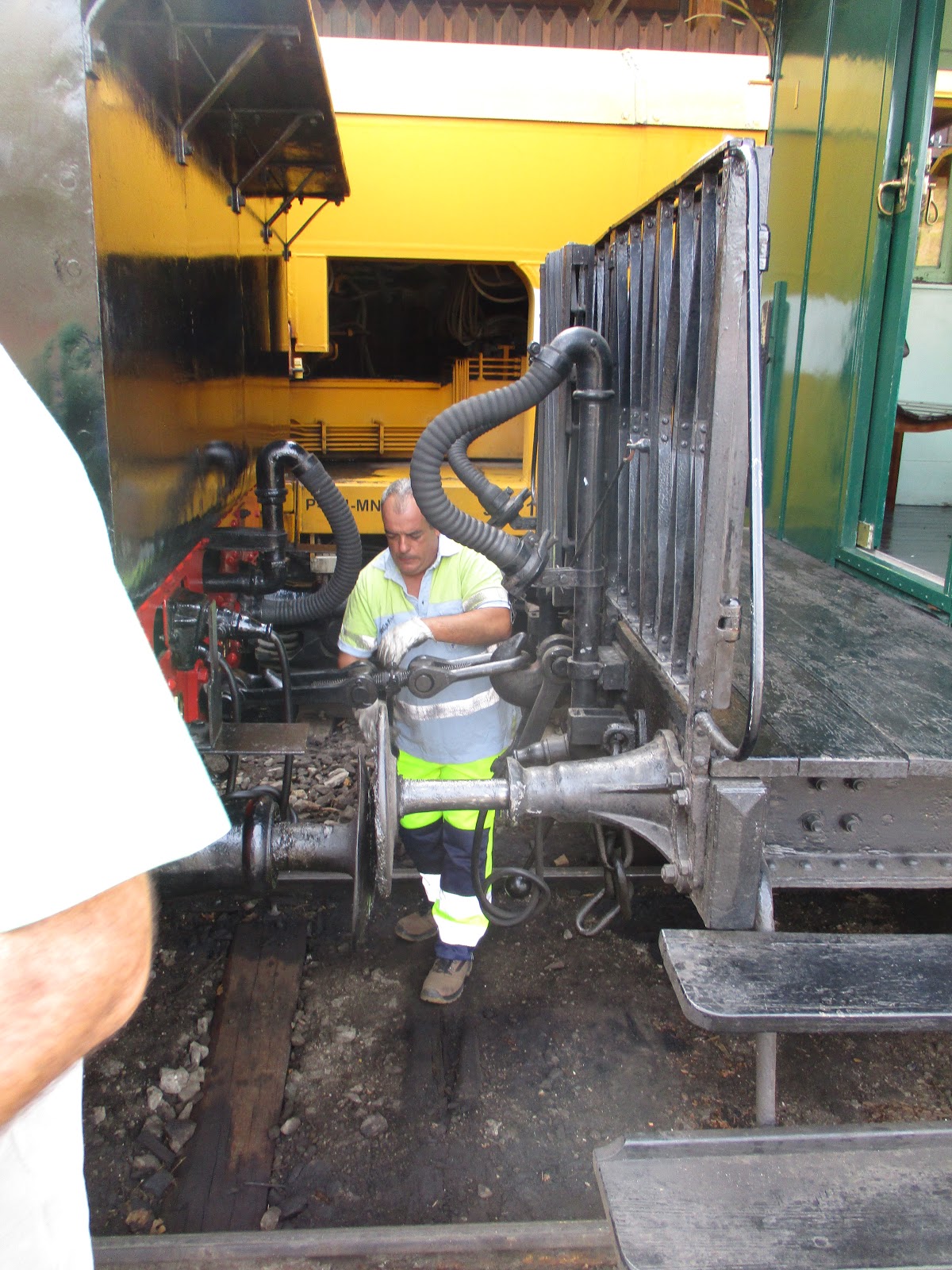 O engate entre duas carruagens e as respectivas varandas que era o regalo da juventude nesse tempo...