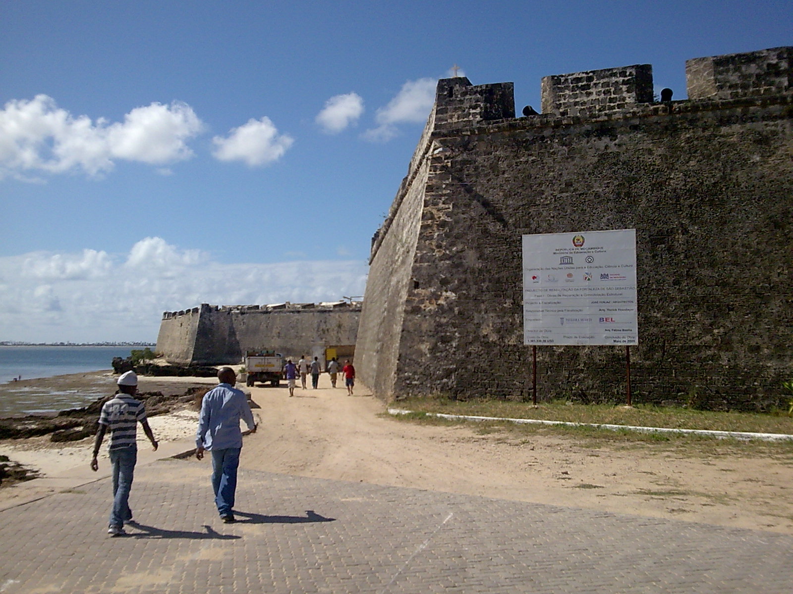 Entrada para a Fortaleza de São Sebastião. Neste momento, e desde já há algum tempo, encontra-se em obras de recuperação feita pela Empresa Teixeira Duarte