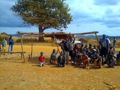 O campo de futebol com a baliza do lado contrário. Aqui o terreno parece em más condições a fazer lembrar o do nosso tempo! Veja-se, também, a proliferação de palhotas a toda a volta do campo.