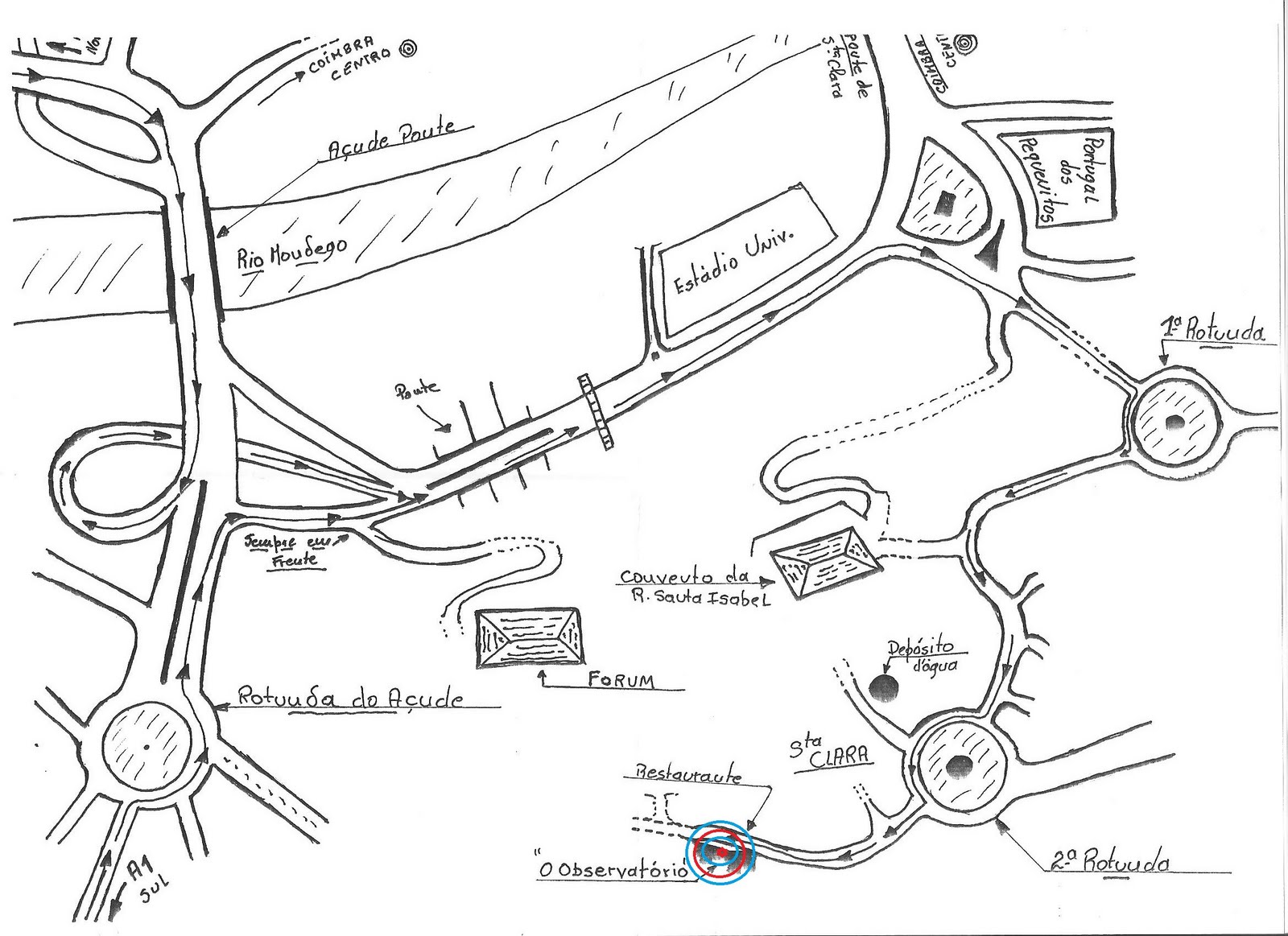 Para que ninguém se perca, aqui vai a última parte do percurso, a partir do "Portugal dos Pequenitos" até ao "Observatório" (conforme sugerido no croquis do Santa). Clique para ampliar... e
